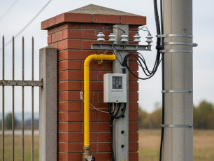 K domu jsou nainstalované přípojky plynu a elektřiny 400V. Rezervovaný příkon jističe je 3x25A. Plynoměr je vzhledem k nevyužívání domu v současné době odpojený.