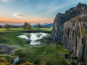 Unikátní a nejstarší chráněný geologický útvar v Česku je proslulý mezi turisty z celé evropy. V 19. stolení zde probíhala těžba čediče, který sloužil jako stavební materiál. Po ukončení těžby se vytěžená prohlubeň zaplnila dešťovou vodou a vzniklo malé jezírko.