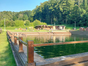 V horní části obce vzdálené 2.6km se nachází upravené venkovní koupaliště z bývalé vodní nádrže. Areál koupaliště je využíván ke konání kulturních a společenských akcí. Areál krom vody ke koupání nabízí upravenou travní plochu, hřiště a hospůdku.