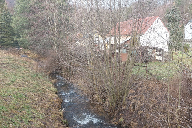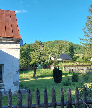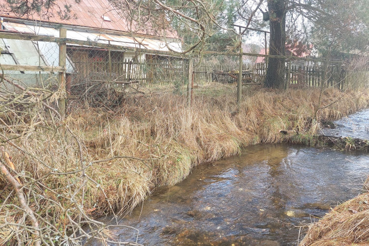 Přirozenou jižní hranicí pozemku je potok, který protéká celou obcí. Potok je celoročné zdrojem vody na zalévání zahrady, nebo i místem k osvěžení v parném dni.